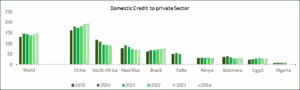 Source: World Bank Data – A high credit to the private sector tends to indicate strong financial intermediation, capital formation, high entrepreneurial activity, and solid economic output. South Africa’s Domestic credit to the private sector is considerably higher than that of other developing markets.