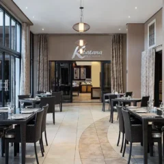 The Kubatana Restaurant celebrates the vibrant flavors of South Africa with a menu that highlights fresh, locally sourced ingredients and a distinct African influence. Situated on the ground floor and open to the public, the restaurant offers a stylish, warm, and welcoming atmosphere. Renowned for its endless breakfast buffet featuring hot and continental options, along with a chef available for made-to-order requests, it promises a delightful start to the day. Guests can enjoy a selection of dishes from the à la carte or buffet menus for lunch and dinner, while 24-hour room service ensures delicious meals are always within reach.
